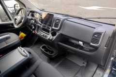 • Tapicerka Czarna Lounge "Crepe" podwójne srebrne przeszycia, zagłówek z tapicerką z logo Ducato