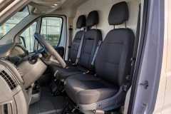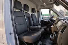 • Fotel kierowcy z regulacją w 6 kierunkach (wzdłużną, wysokości, pochylenia oparcia), z regulacją poduszki podparcia lędźwiowego, z podłokietnikiem i szufladą pod spodem