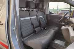 • Stała stalowa przegroda kabiny z otworem na długie przedmioty Extenso, z siedzeniem pasażera z przodu dla dwóch osób, z ruchomym stolikiem (po złożeniu środkowego oparcia) i składanym fotelem zewnętrznym