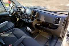 • Tapicerka Czarna Lounge "Crepe" podwójne srebrne przeszycia, zagłówek z tapicerką z logo Ducato