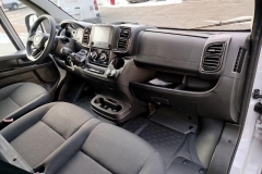 • Fotel kierowcy z regulacją w 6 kierunkach (wzdłużną, wysokości, pochylenia oparcia), z regulacją poduszki podparcia lędźwiowego, z podłokietnikiem i szufladą pod spodem